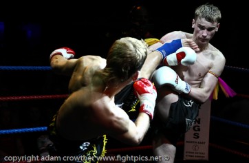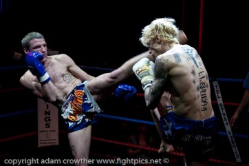 Greaves starts off slightly stronger and gets into attacking mode a little quicker, though Imieson soon starts giving like for like, responding to each attack with a venomous counter. In the second, Imieson comes forward with much more determination, and the excitement level is cranked up. Greaves seems to be getting slightly the better of things in the clinch with his use of the knee. Again in round three, Greaves just takes the edge in the clinch, catching Imieson with some powerful knees. Imieson is still giving a spirited fight though, and at no point does either fighter look too comfortable or in overall control. In the fourth, Imieson closes the gap even more, coming in with some really strong punches, and in the clinch answering Greaves with some good knee strikes of his own. In the fifth, Imieson gives his all, coming forward with powerful techniques. This is a really hard fought final round and a fantastic show by both fighters. Imieson hadn’t quite done enough to woo the judges and the decision goes to Greaves, but both fighters can hold their heads high after such a hard fought bout. One has to concur with MC Tony Dean, who describes them as Muay Thai stars of the future. I, for one, look forward to seeing much more of these two spirited fighters.